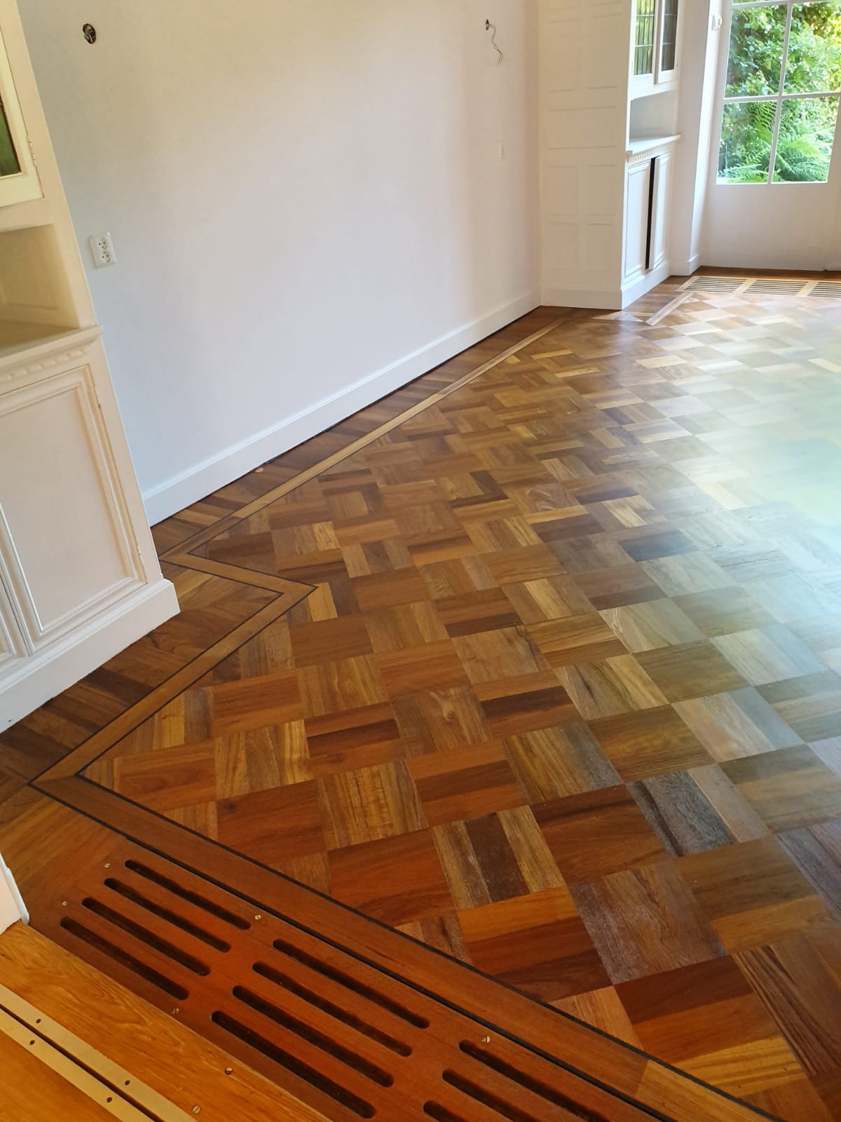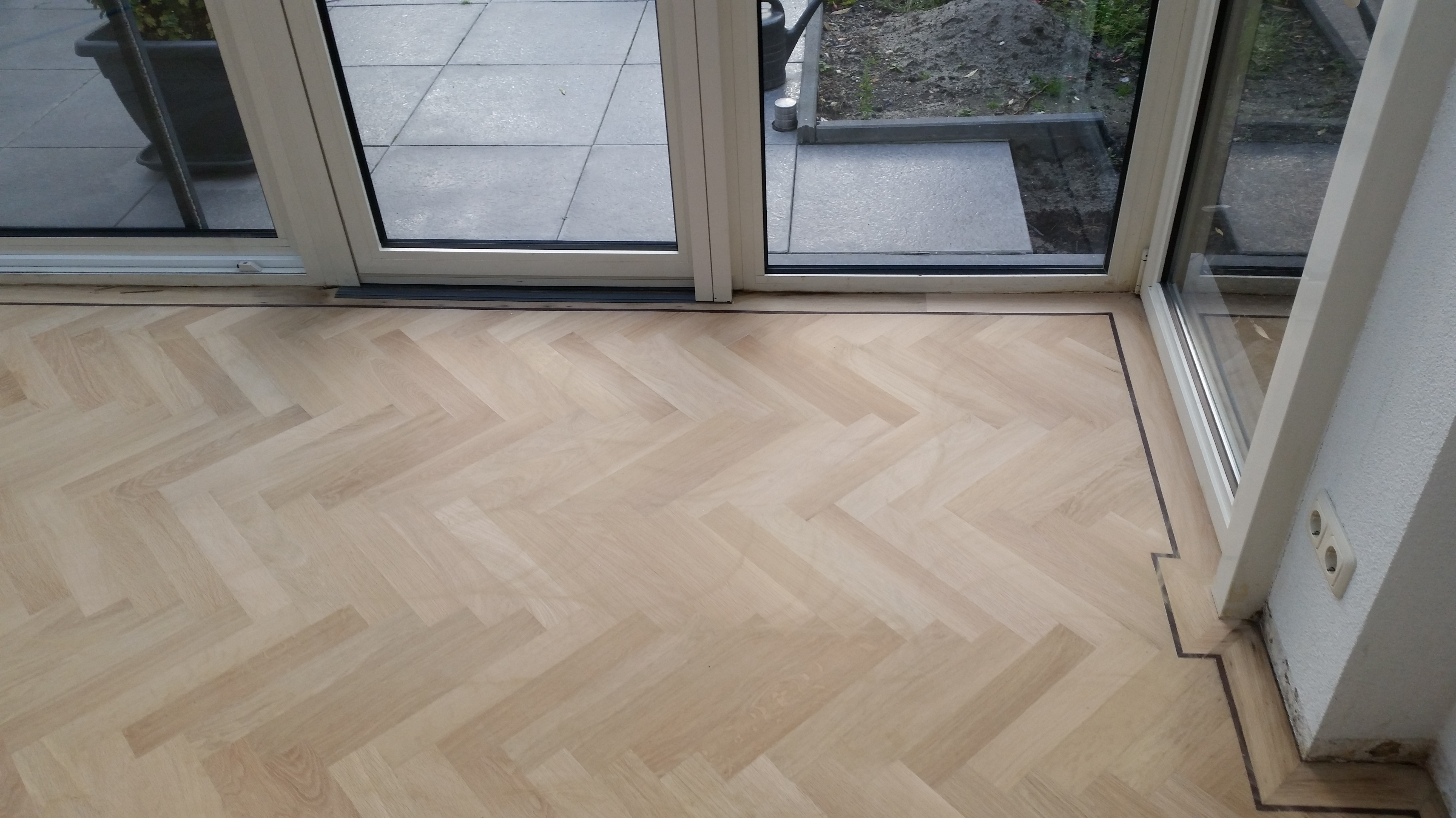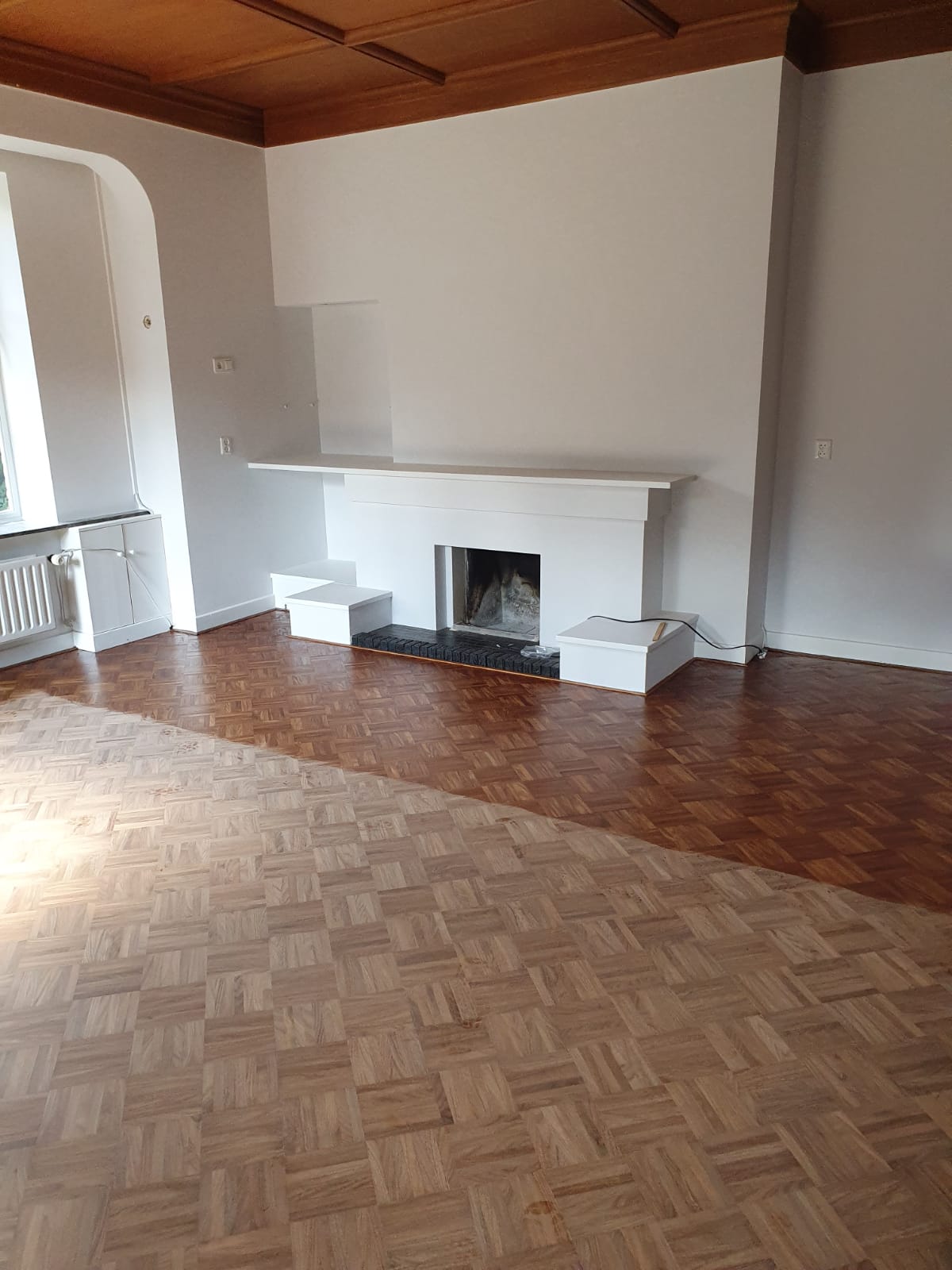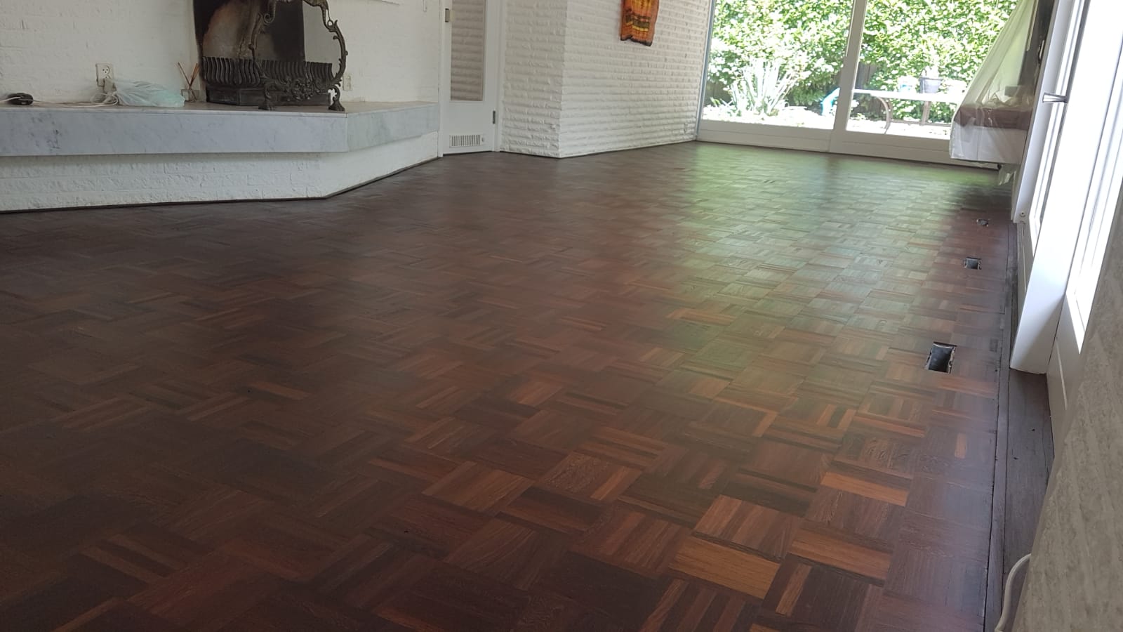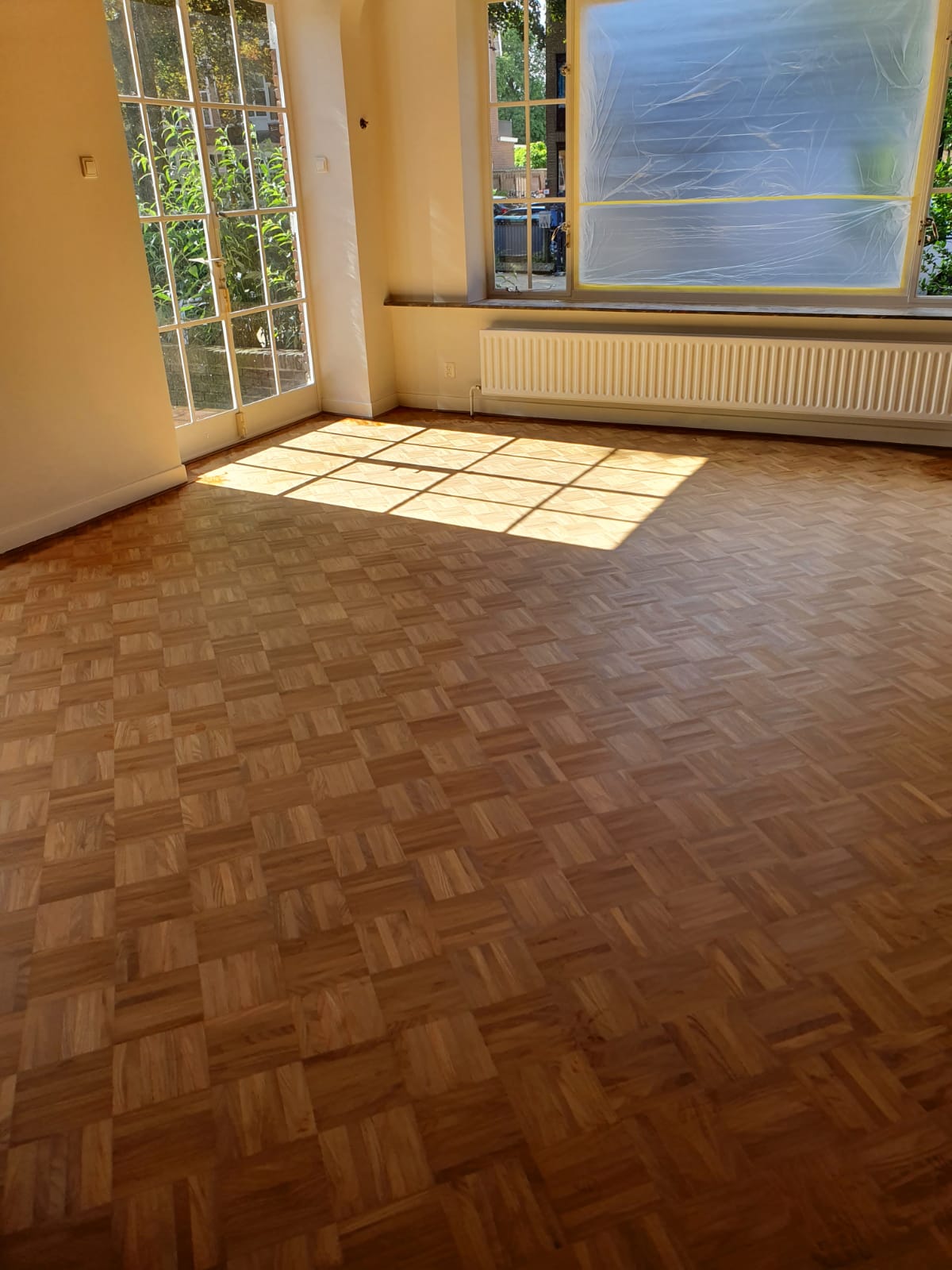 100 m² Wengé blokmotief schuren en behandelen, Goirle